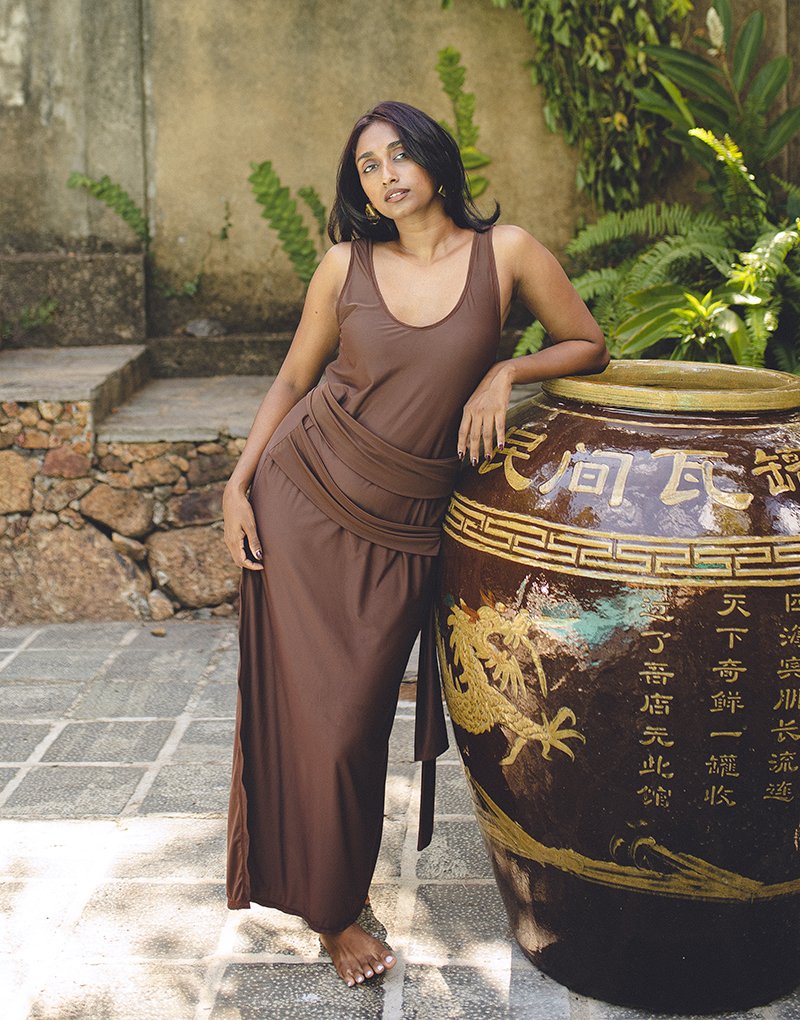 Minimal maxi dress crafted from a soft matte stretch fabric with a smooth, touchable surface. Designed to follow the body while maintaining comfort and a clean, fluid line.
