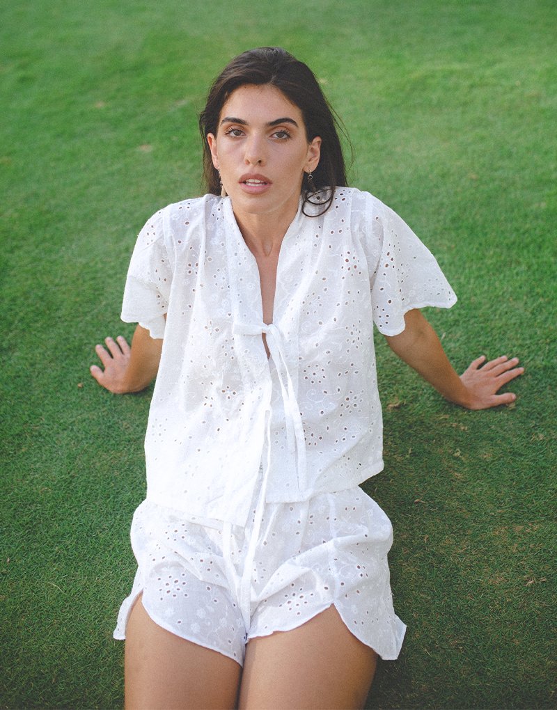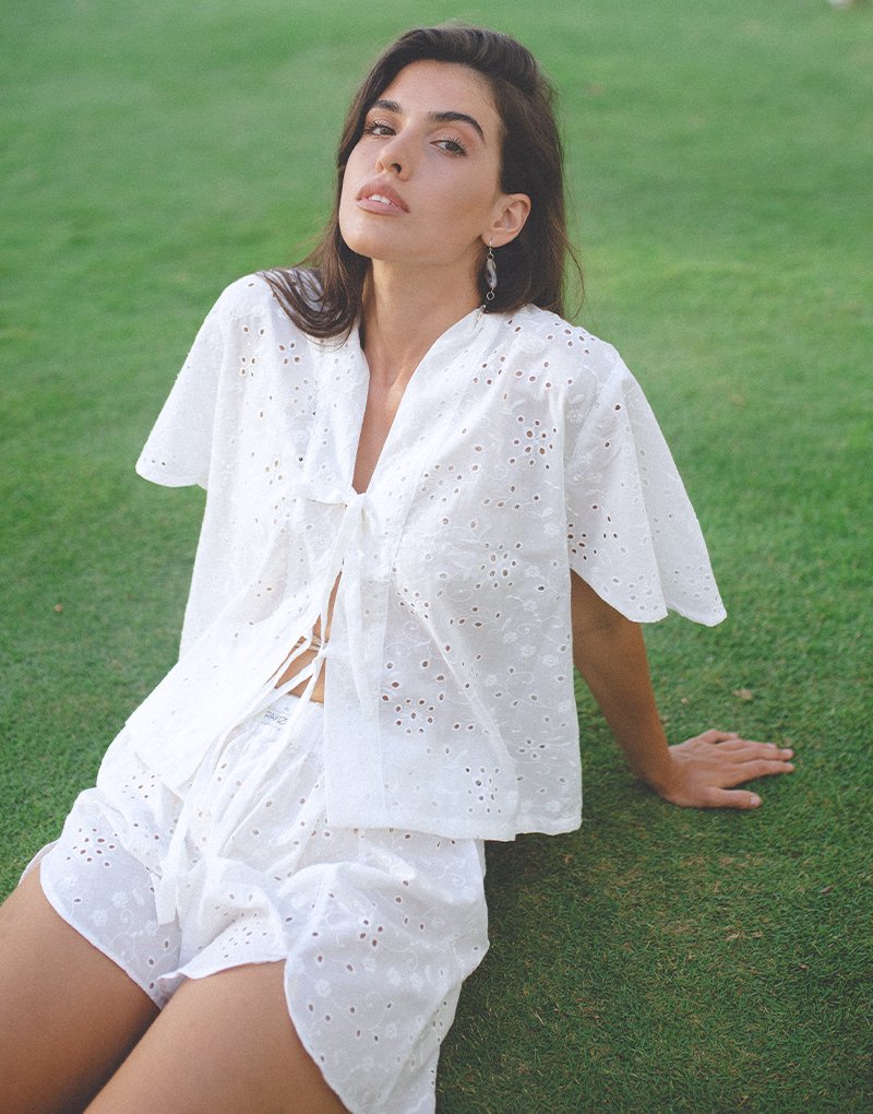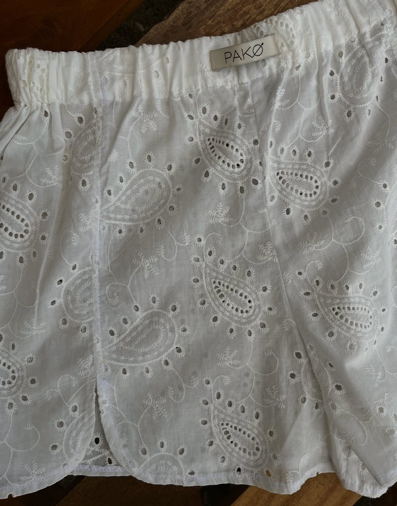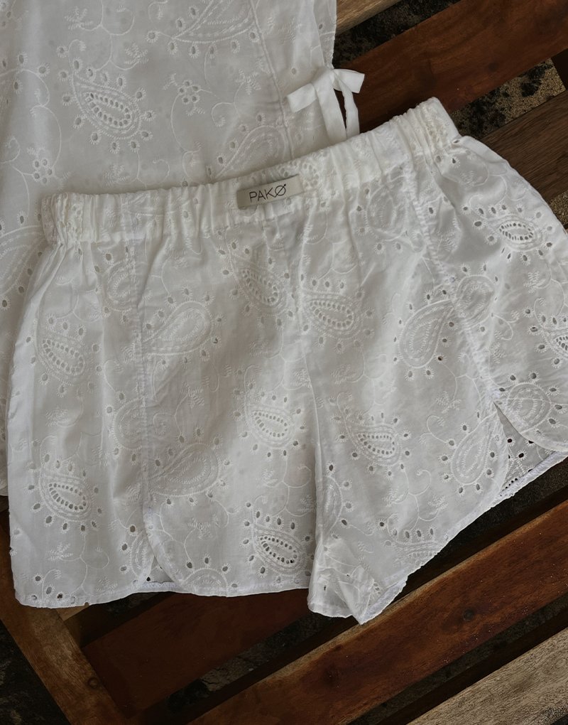 Lightweight shorts crafted from airy cotton lace with a soft, natural drape. The relaxed silhouette sits gently on the body, defined by a clean elastic waistband.